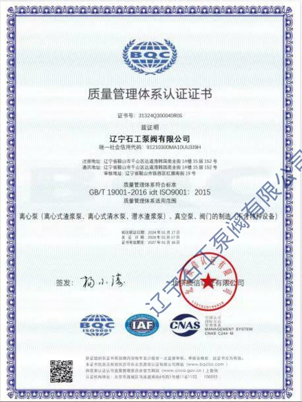 遼寧石工泵閥 有限公司 致力于研究、設(shè)計、生產(chǎn)及銷售各種工業(yè)水泵。公司秉承“質(zhì)量為主,客戶至上”的原則,為客戶提供渣漿泵、壓濾機入料泵、液下泵、清水泵、多級泵、雙吸泵、管道泵、化工泵、氟塑料泵、潛污泵、深井泵、潛水渣漿泵、泡沫泵、沙礫泵等產(chǎn)品。公司有多年的生產(chǎn)經(jīng)驗,良好的管理體系和質(zhì)量保證體系,我公司擁有雄厚的生產(chǎn)技術(shù)力量,完善的生產(chǎn)保障、質(zhì)量保證監(jiān)督體系和專業(yè)型精神隊伍。 產(chǎn)品主要為煤炭、電力...